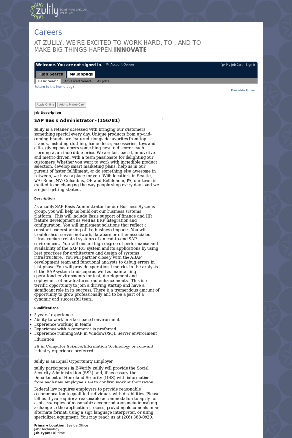 As a zulily SAP Basis Administrator for our Business Systems group, you will help us build out our business systems platform. This will include Basis support of finance and HR feature development as well as ERP integration and configuration. You will implement solutions that reflect a constant understanding of the business impacts. You will troubleshoot server, network, database or other associated infrastructure related systems of an end-to-end SAP environment. You will ensure high degree of performance and availability of the SAP R/3 system and its applications by using best practices for architecture and design of systems infrastructure. You will partner closely with the ABAP development team and functional analysts to debug errors in test phase. You will provide operational metrics in the analysis of the SAP system landscape as well as maintaining operational environments for test, development and deployment of new features and enhancements. This is a terrific opportunity to join a thriving startup and have a significant role in its success. There is a tremendous amount of opportunity to grow professionally and to be a part of a dynamic and successful team.