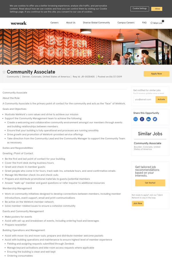 A Community Associate is the primary point of contact for the community and acts as the “face” of WeWork.