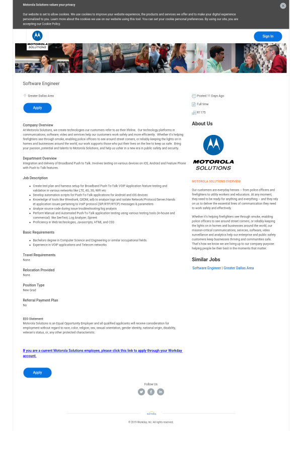 If you are a current Motorola Solutions employee, please click this link to apply through your Workday account.