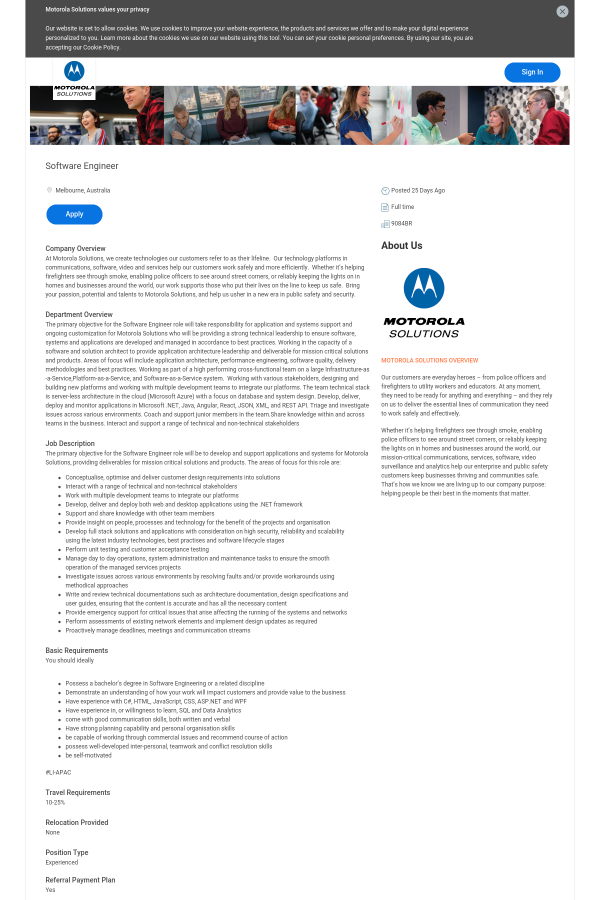 If you are a current Motorola Solutions employee, please click this link to apply through your Workday account.