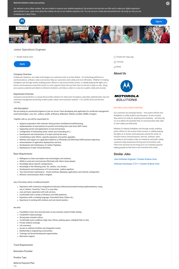 We are looking for passionate Engineer to join our Scrum Team developing web application for certificate management. Used technologies: Java, GIT, Jenkins, Gradle, Artifactory, BitBucket, VMware, Ansible, Wildfly, Postgres.