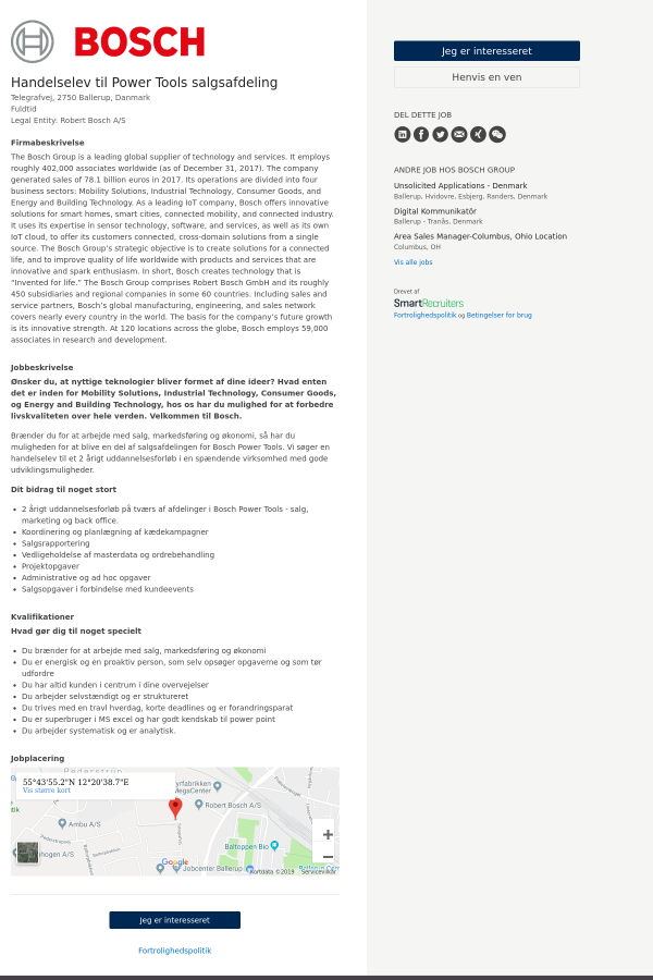 Brænder du for at arbejde med salg, markedsføring og økonomi, så har du muligheden for at blive en del af salgsafdelingen for Bosch Power Tools. Vi søger en handelselev til et 2 årigt uddannelsesforløb i en spændende virksomhed med gode udviklingsmuligheder.