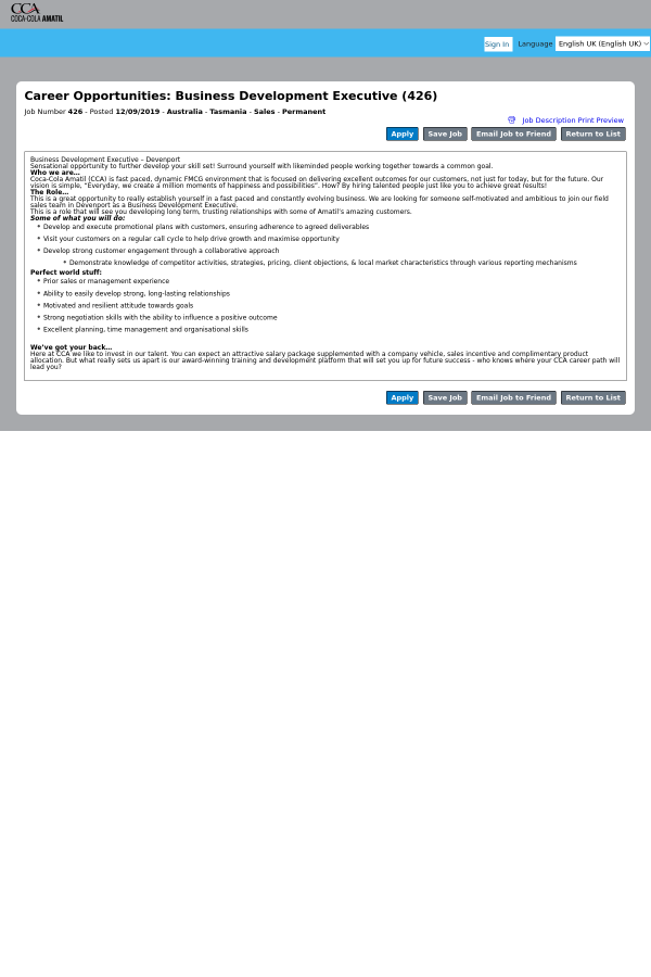 Coca-Cola Amatil (CCA) is fast paced, dynamic FMCG environment that is focused on delivering excellent outcomes for our customers, not just for today, but for the future. Our vision is simple, “Everyday, we create a million moments of happiness and possibilities”. How? By hiring talented people just like you to achieve great results!