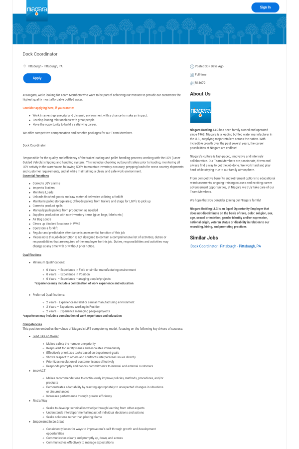 At Niagara, we’re looking for Team Members who want to be part of achieving our mission to provide our customers the highest quality most affordable bottled water.