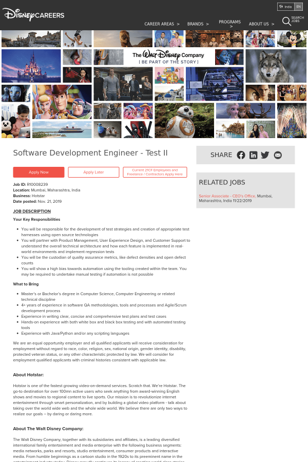 This position is with Novi Digital Entertainment Pvt Ltd, which is part of a business segment we call Hotstar.