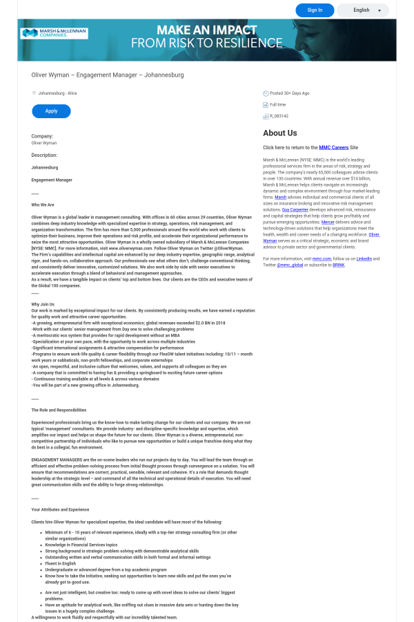 Clients hire Oliver Wyman for specialized expertise, the ideal candidate will have most of the following: