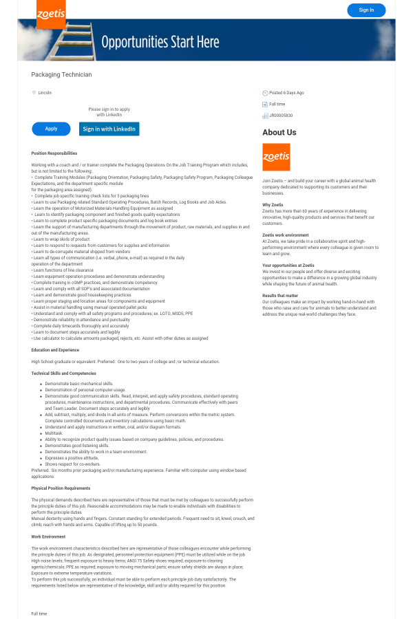 Zoetis is committed to equal opportunity in the terms and conditions of employment for all employees and job applicants without regard to race, color, religion, sex, sexual orientation, age, gender identity or gender expression, national origin, disability or veteran status or any other protected classification. Disabled individuals are given an equal opportunity to use our online application system. We offer reasonable accommodations as an alternative if requested by an individual with a disability. Please contact Zoetis Colleague Services at zoetiscolleagueservices@zoetis.com to request an accommodation. Zoetis also complies with all applicable national, state and local laws governing nondiscrimination in employment as well as employment eligibility verification requirements of the Immigration and Nationality Act. All applicants must possess or obtain authorization to work in the US for Zoetis. Zoetis retains sole and exclusive discretion to pursue sponsorship for the acquisition or maintenance of nonimmigrant status and employment eligibility, considering factors such as availability of qualified US workers. Individuals requiring sponsorship must disclose this fact. Please note that Zoetis seeks information related to job applications from candidates for jobs in the U.S. solely via the following: (1) our company website at www.Zoetis.com/careers site, or (2) via email to/from addresses using only the Zoetis domain of “@zoetis.com”. In addition, Zoetis does not use Google Hangout for any recruitment related activities. Any solicitation or request for information related to job applications with Zoetis via any other means and/or utilizing email addresses with any other domain should be disregarded. In addition, Zoetis will never ask candidates to make any type of personal financial investment related to gaining employment with Zoetis.