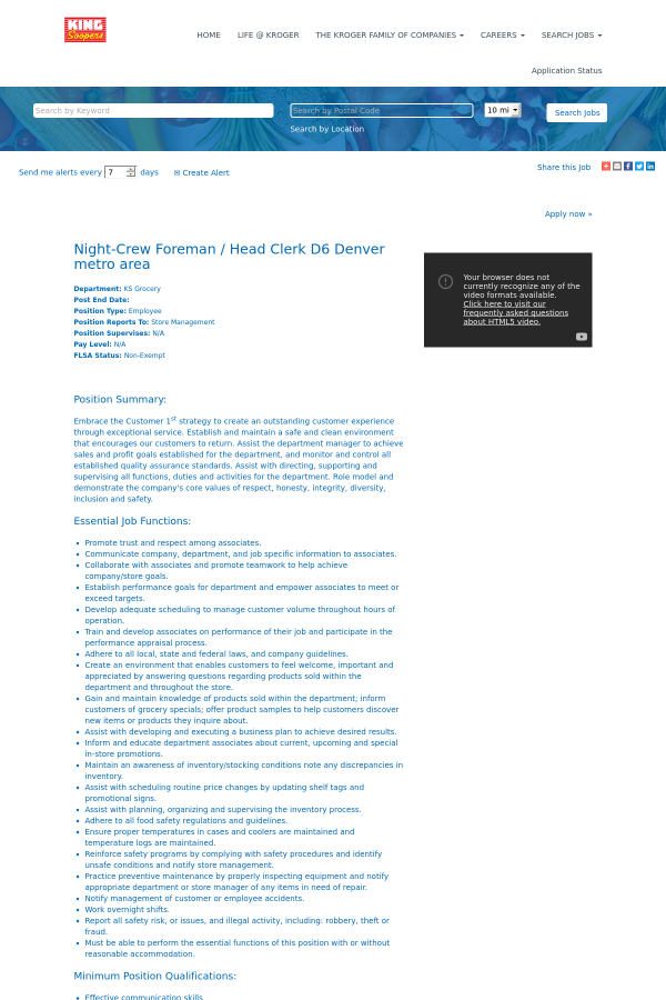 Night-Crew Foreman / Head Clerk D6 Denver metro area