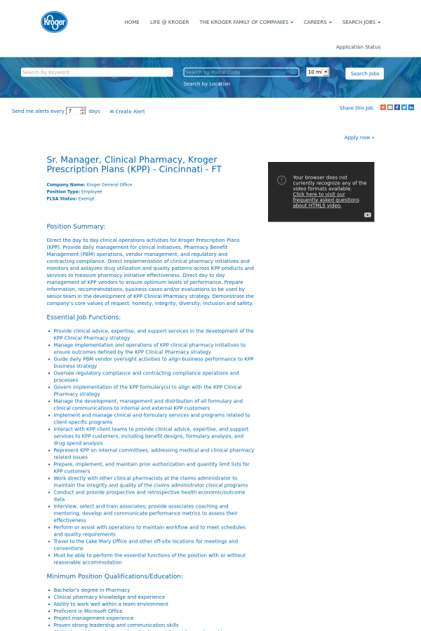 Sr. Manager, Clinical Pharmacy, Kroger Prescription Plans (KPP) - Cincinnati - FT