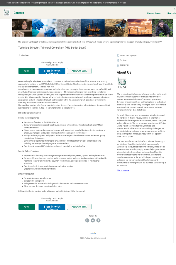 ERM is looking for a highly experienced HSE Consultant to be based in our Aberdeen office. The role is an exciting opportunity to continue to build ERM’s holistic HSE services within the Aberdeen market working locally as well as globally with our established team. This is a staff role.