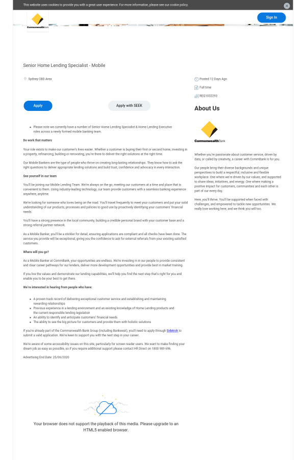 If you're already part of the Commonwealth Bank Group (including Bankwest), you'll need to apply through Sidekick to submit a valid application. We’re keen to support you with the next step in your career.