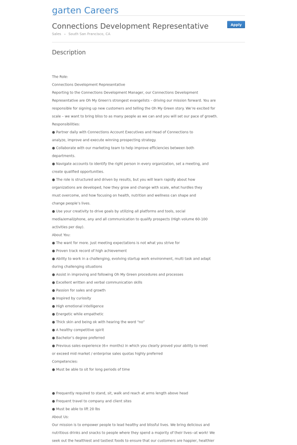 responsible for signing up new customers and telling the Oh My Green story. We’re excited for