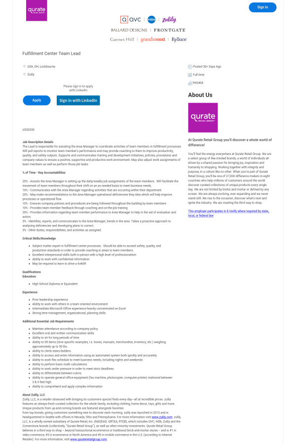 As an equal opportunity employer, Qurate Retail Group is committed to a diverse workforce and is also committed to a barrier-free employment process. In order to ensure reasonable accommodations for individuals pursuant to applicable law, individuals that require accommodation in the job application process for a posted position may contact us at CareersUS@QVC.com for assistance.