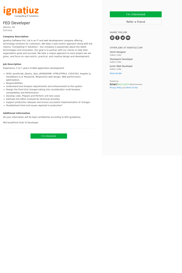 Ignatiuz Software Pvt. Ltd is an IT and web development company offering technology solutions for customers. We keep a user-centric approach along with the mantra “Compelling IT Solutions”. Our company is passionate about the latest technologies and innovation. Our goal is to partner with our clients to help their organization grow and succeed. We take a unique approach to each project we are given, and focus on user-centric, practical, and creative design and development.