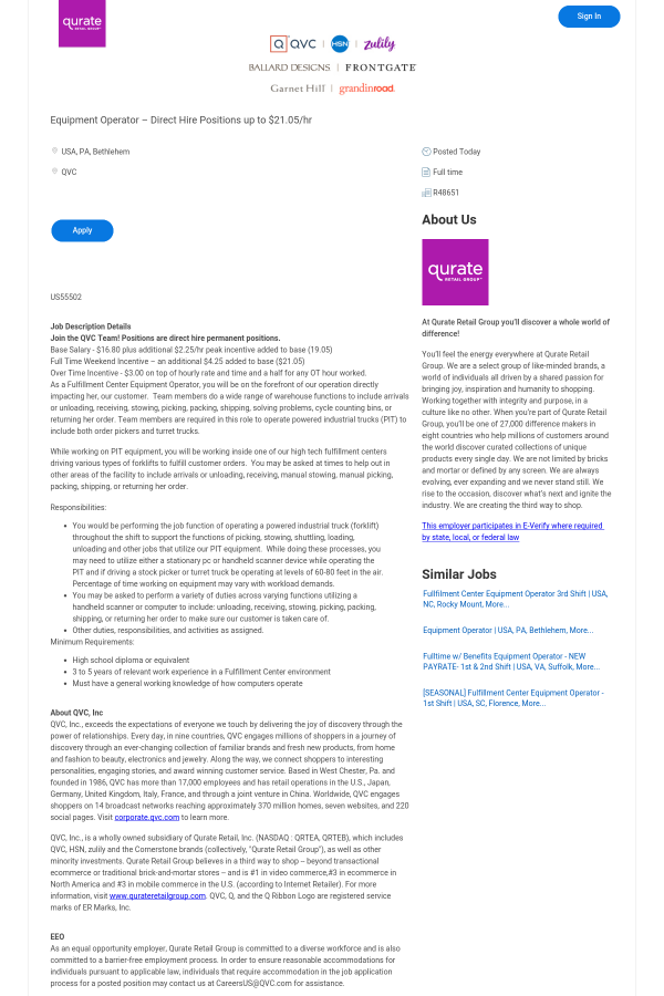 Join the QVC Team! Positions are direct hire permanent positions.