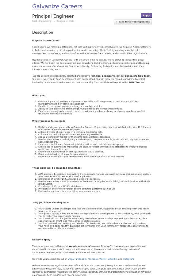 Thanks for your interest! Apply at wegalvanize.com/careers. Once we’re reviewed your application and determined it’s a match, we’ll reach out with next steps. Please note that due to the high volume of applications received, only short-listed candidates will be contacted.