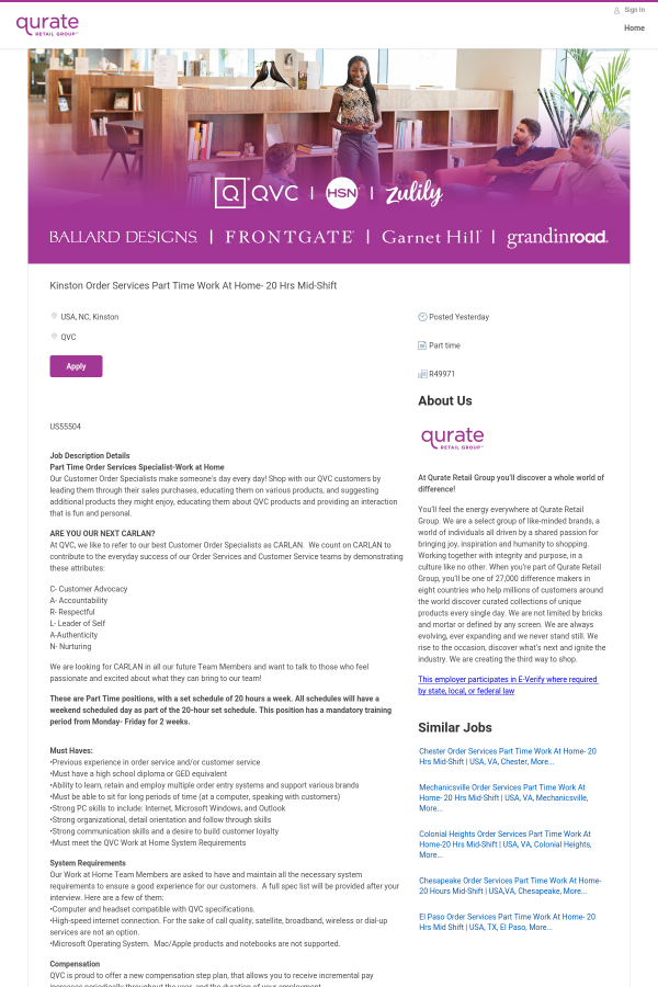 As an equal opportunity employer, Qurate Retail Group is committed to a diverse workforce and is also committed to a barrier-free employment process. In order to ensure reasonable accommodations for individuals pursuant to applicable law, individuals that require accommodation in the job application process for a posted position may contact us at CareersUS@QVC.com for assistance.