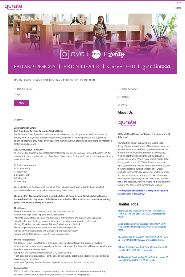 As an equal opportunity employer, Qurate Retail Group is committed to a diverse workforce and is also committed to a barrier-free employment process. In order to ensure reasonable accommodations for individuals pursuant to applicable law, individuals that require accommodation in the job application process for a posted position may contact us at CareersUS@QVC.com for assistance.