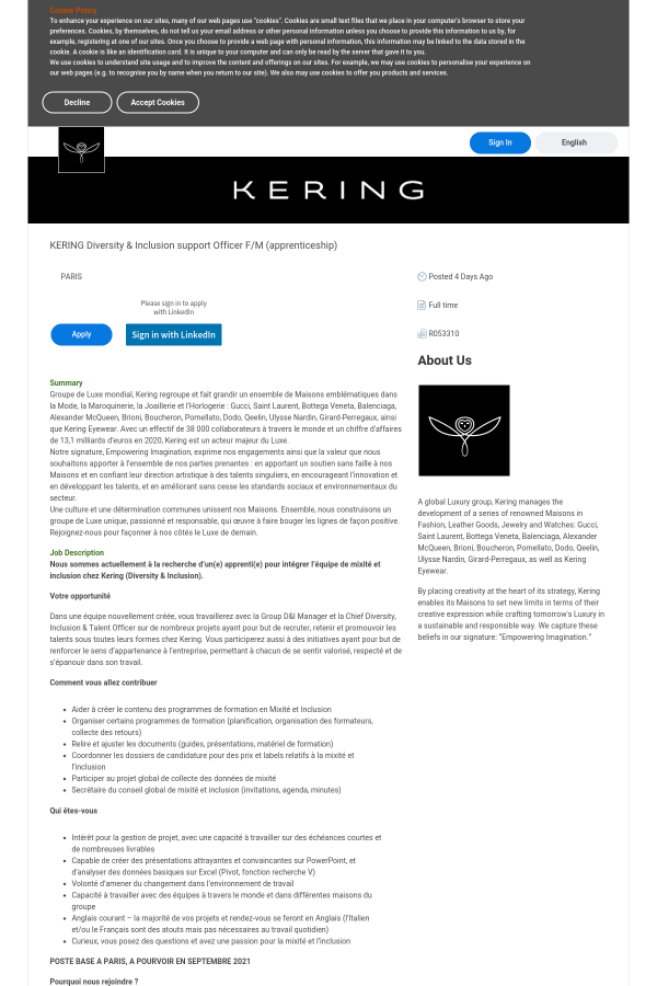Nous sommes actuellement à la recherche d’un(e) apprenti(e) pour intégrer l’équipe de mixité et inclusion chez Kering (Diversity & Inclusion).
