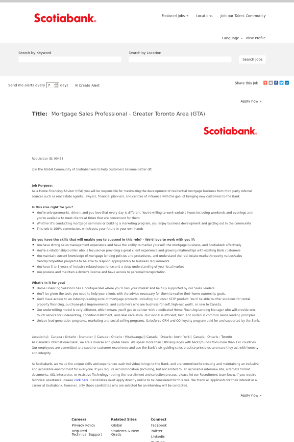 - You have strong sales management experience and have the ability to market yourself, the mortgage business, and Scotiabank effectively