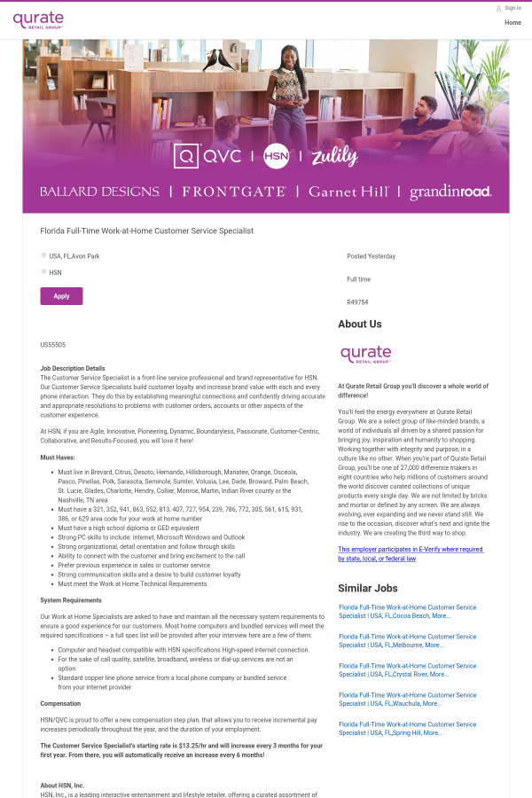 As an equal opportunity employer, Qurate Retail Group is committed to a diverse workforce and is also committed to a barrier-free employment process. In order to ensure reasonable accommodations for individuals pursuant to applicable law, individuals that require accommodation in the job application process for a posted position may contact us at CareersUS@QVC.com for assistance.