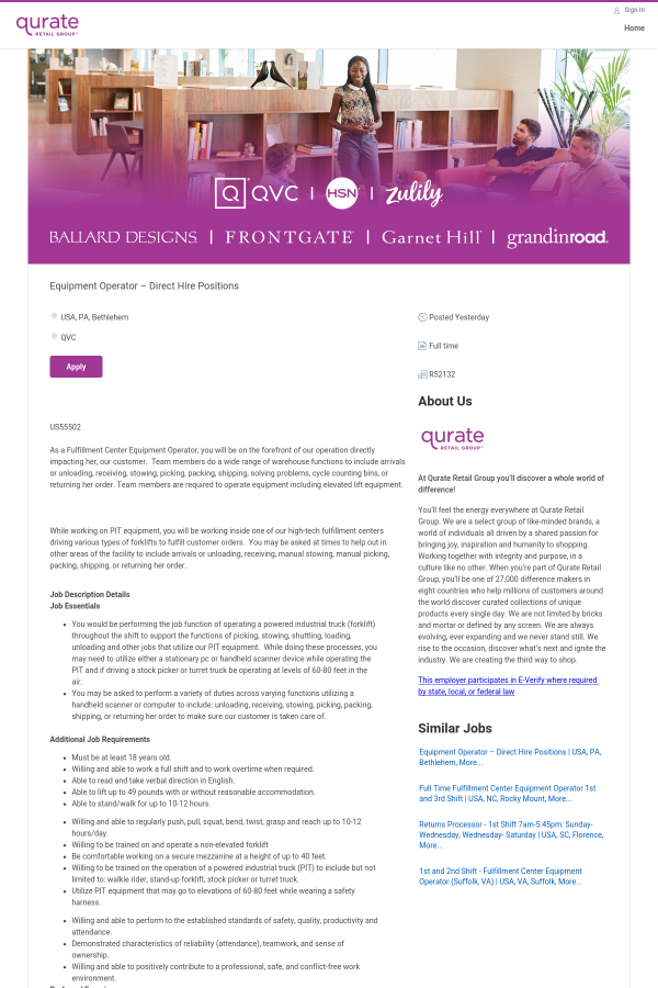 As an equal opportunity employer, Qurate Retail Group is committed to a diverse workforce and is also committed to a barrier-free employment process. In order to ensure reasonable accommodations for individuals pursuant to applicable law, individuals that require accommodation in the job application process for a posted position may contact us at CareersUS@QVC.com for assistance.