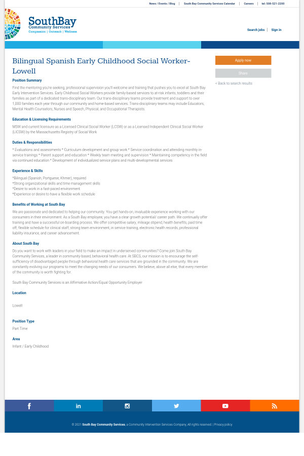 South Bay Community Services is an Affirmative Action/Equal Opportunity Employer