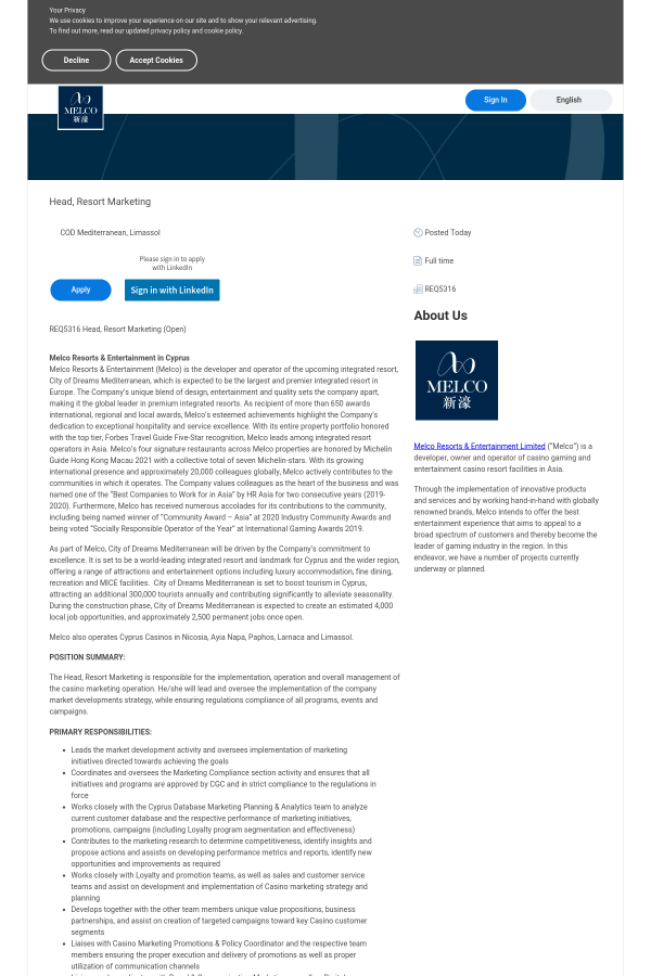 REQ5316 Head, Resort Marketing (Open)