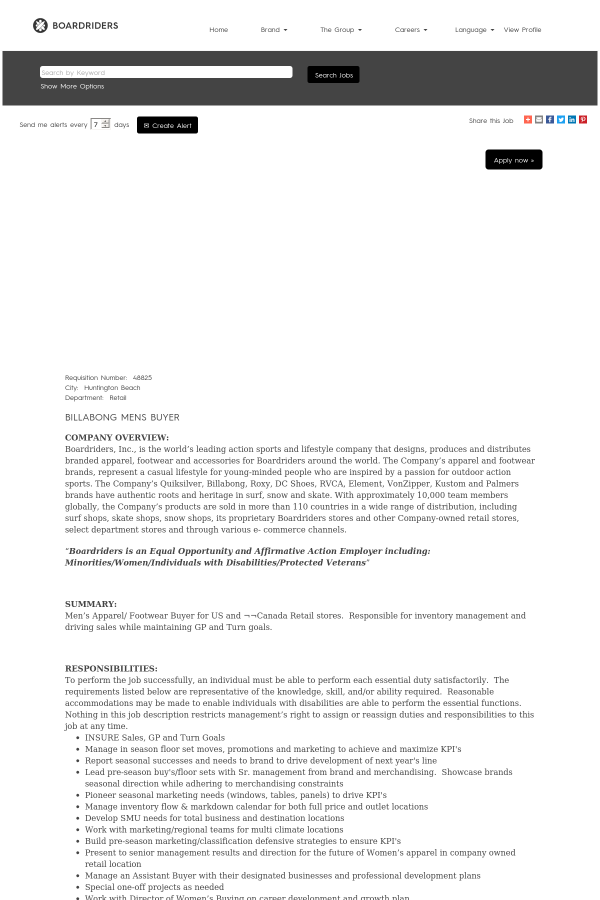 “Boardriders is an Equal Opportunity and Affirmative Action Employer including: Minorities/Women/Individuals with Disabilities/Protected Veterans”