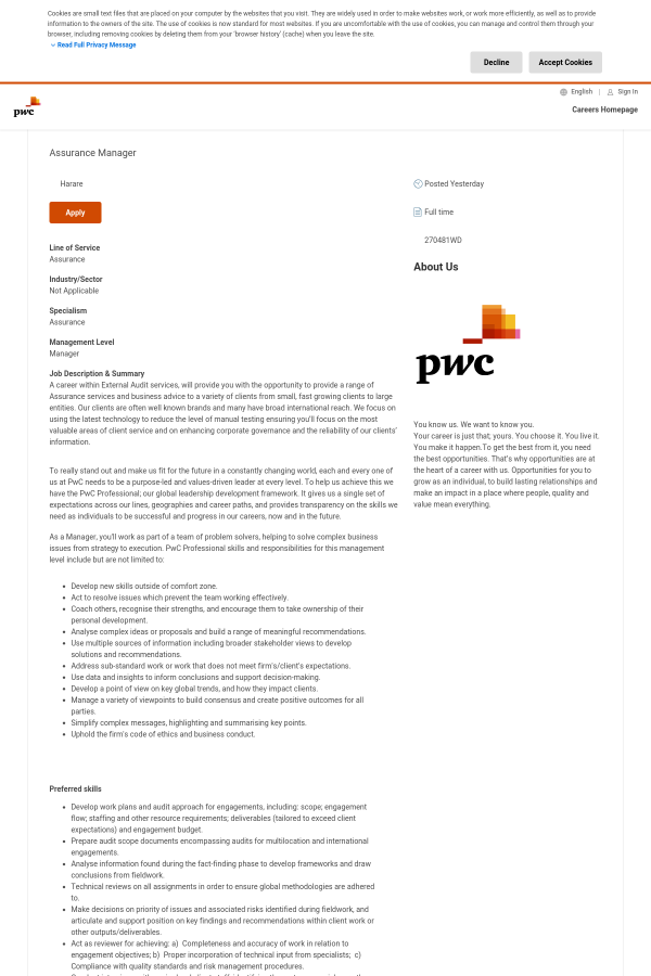 • Make decisions on priority of issues and associated risks identified during fieldwork, and articulate and support position on key findings and recommendations within client work or other outputs/deliverables.
