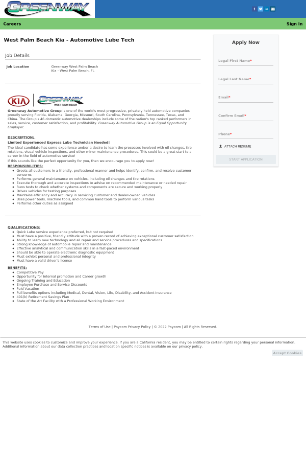 The ideal candidate has some experience and/or a desire to learn the processes involved with oil changes, tire rotations, visual vehicle inspections, and other minor maintenance procedures. This could be a great start to a career in the field of automotive service!