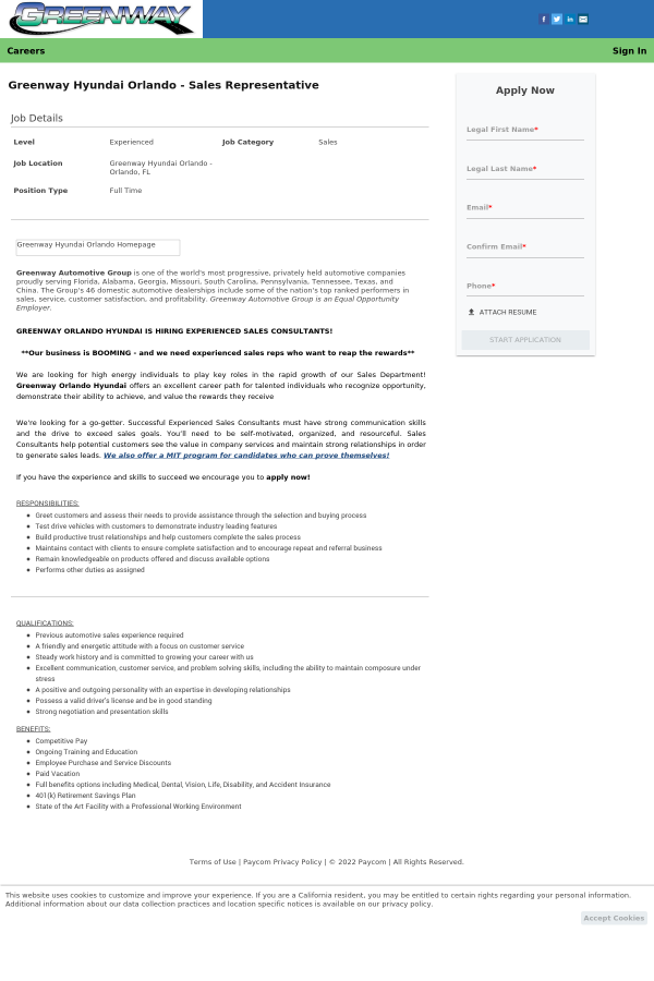 GREENWAY ORLANDO HYUNDAI IS HIRING EXPERIENCED SALES CONSULTANTS!