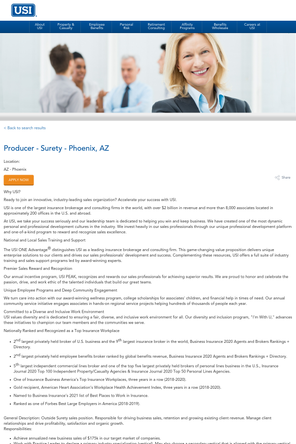 - Understand and explain USI’s competitive differentiation to clients and prospects.