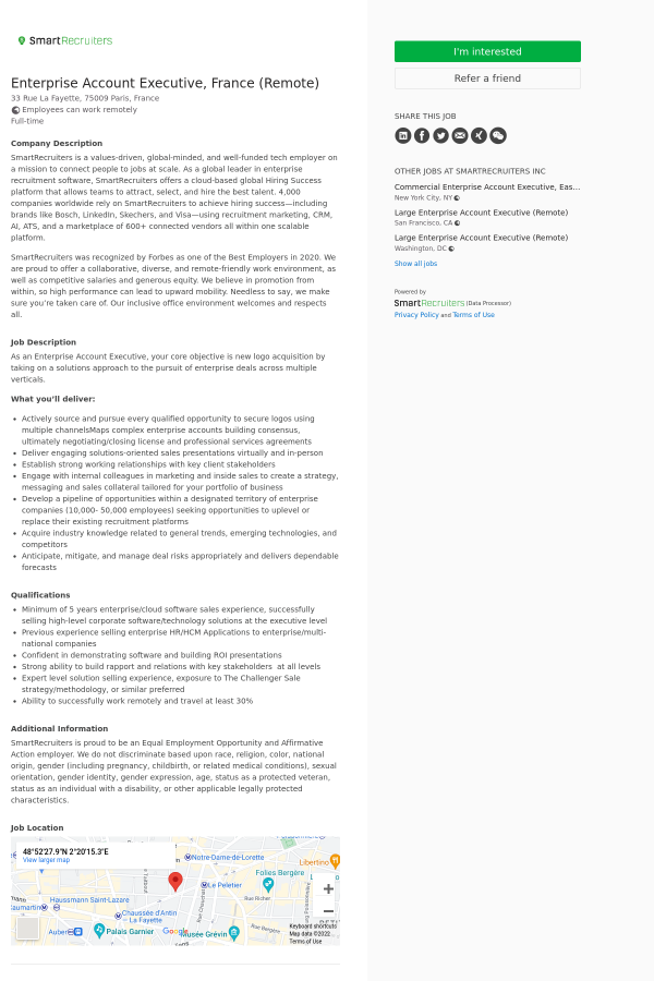 SmartRecruiters is a values-driven, global-minded, and well-funded tech employer on a mission to connect people to jobs at scale. As a global leader in enterprise recruitment software, SmartRecruiters offers a cloud-based global Hiring Success platform that allows teams to attract, select, and hire the best talent. 4,000 companies worldwide rely on SmartRecruiters to achieve hiring success—including brands like Bosch, LinkedIn, Skechers, and Visa—using recruitment marketing, CRM, AI, ATS, and a marketplace of 600+ connected vendors all within one scalable platform.
