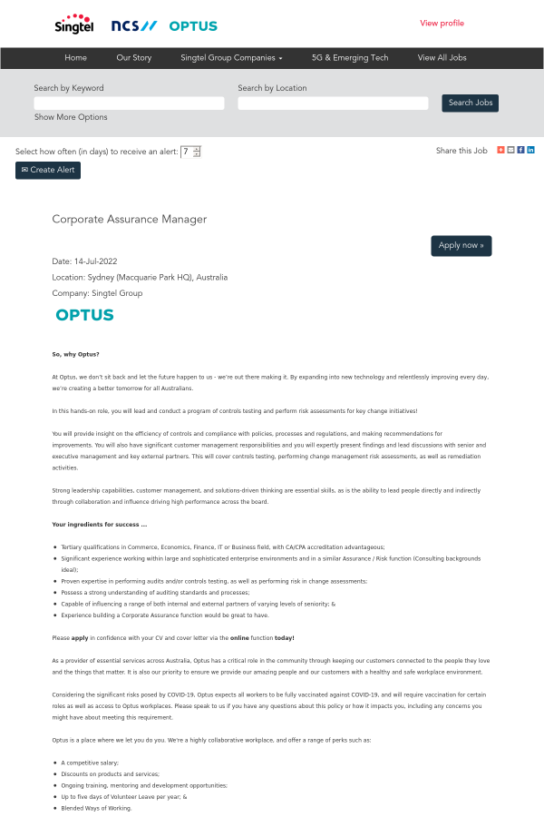 Please no recruitment agencies, we’ll be managing this role in-house. Any resumes submitted outside of our process will be deemed the sole property of Optus.