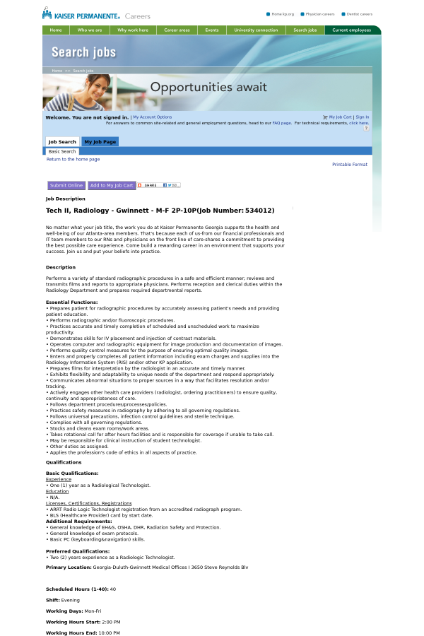 Tech II, Radiology - Gwinnett - M-F 2P-10P (