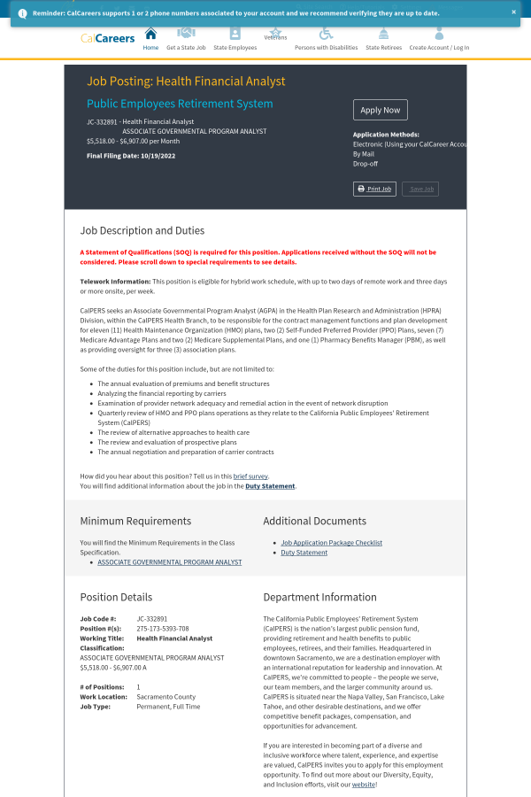 If you are interested in becoming part of a diverse and inclusive workforce where talent, experience, and expertise are valued, CalPERS invites you to apply for this employment opportunity. To find out more about our Diversity, Equity, and Inclusion efforts, visit our website!